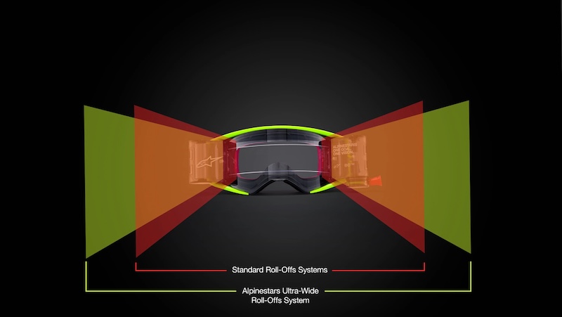 Khung kính còn tương thích hoàn hảo với hệ thống Alpinestars Wide-Vision Roll-Off, cho phép sử dụng cuộn film làm sạch kính khi chạy trong điều kiện bùn đất hoặc bụi dày.