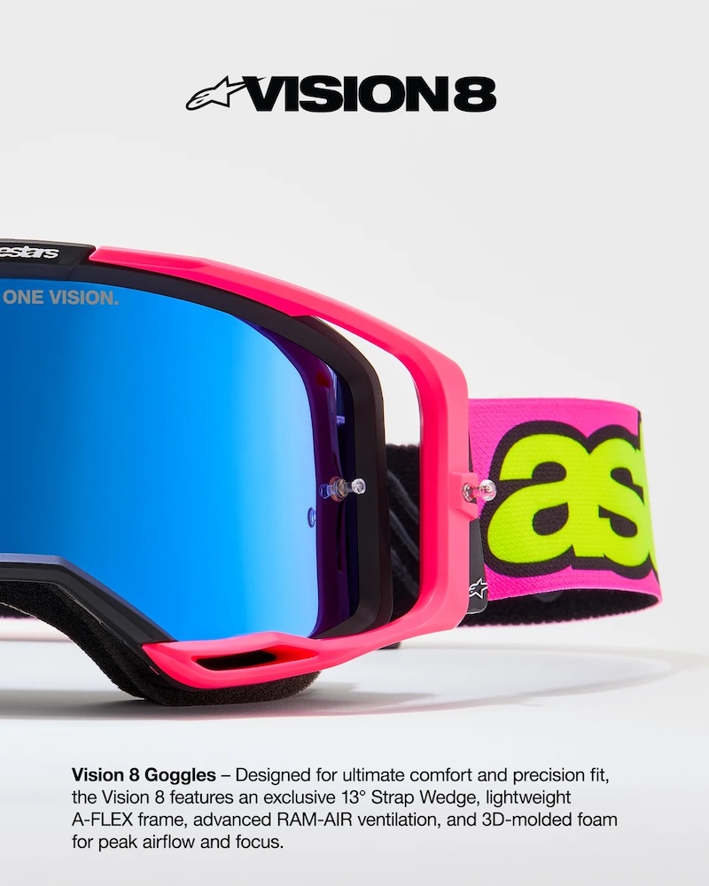 Trong bộ trang bị bảo hộ dành cho motocross, enduro hay off-road, kính goggle là một trong những món đồ quan trọng nhất vì ảnh hưởng trực tiếp đến tầm nhìn và khả năng kiểm soát xe. Alpinestars Vision 8 Goggles là dòng kính được Alpinestars phát triển dựa trên kinh nghiệm từ các tay đua chuyên nghiệp trên toàn thế giới, với hai mục tiêu cốt lõi: độ thoải mái và hiệu năng khi vận hành.
